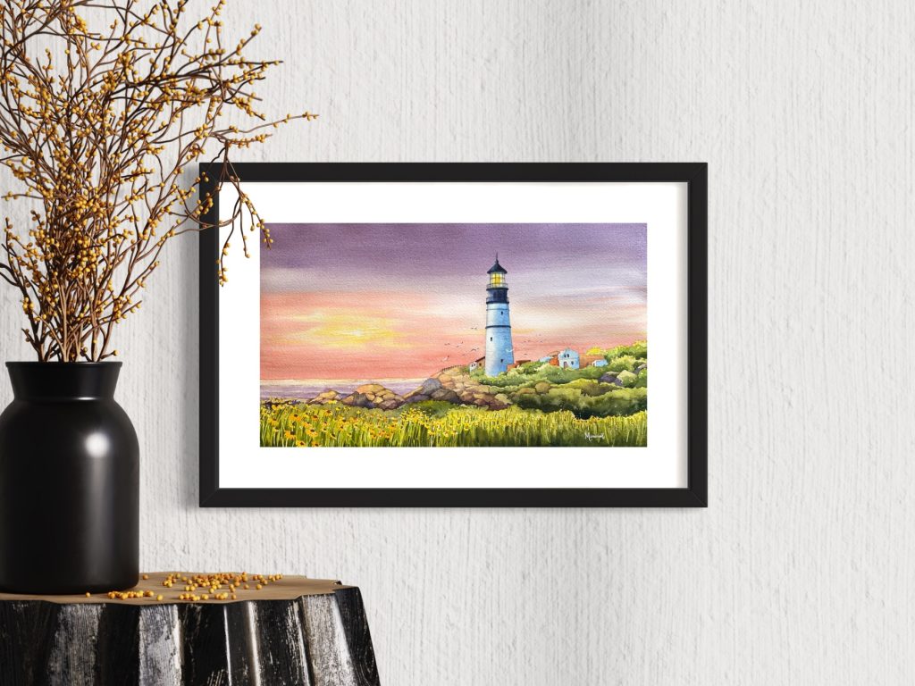 painting, nestled amongst fields of yellow flowers in Cape Elizabeth, Maine, the venerable